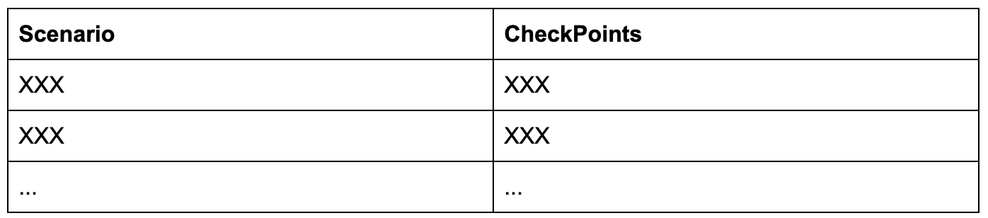 主要测试场景及其checkpoints