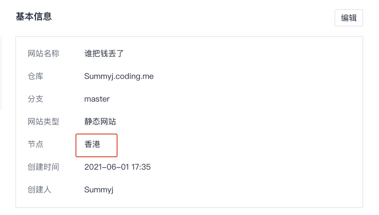 然后再次探索CodingPages,发现它部署的节点是香港: