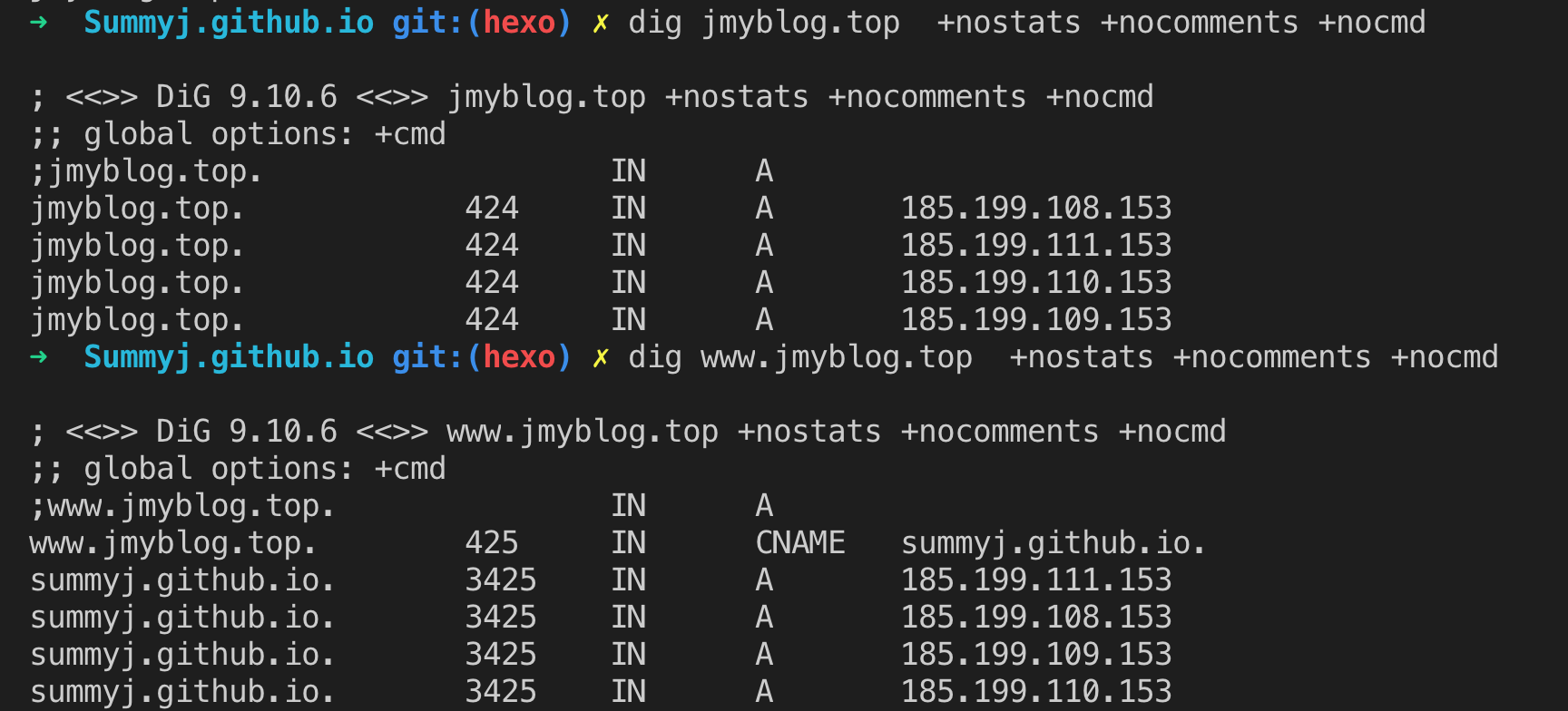 2. 加上www域名前缀:是说在代码库的CNAME文件里给域名加上www前缀,然后在域名解析里也加上www,最后绑定www前缀的域名。但还是没有解决我的问题。