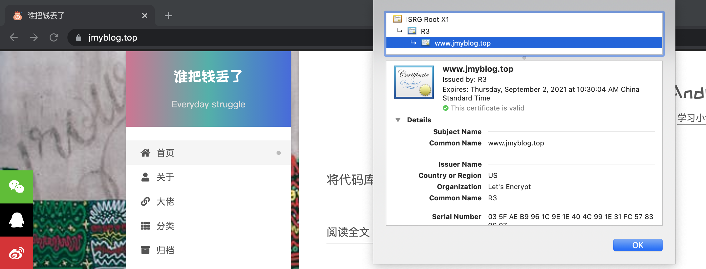 之后再访问博客,可以看到证书已经更新了,到期日为明年6/1: